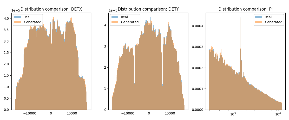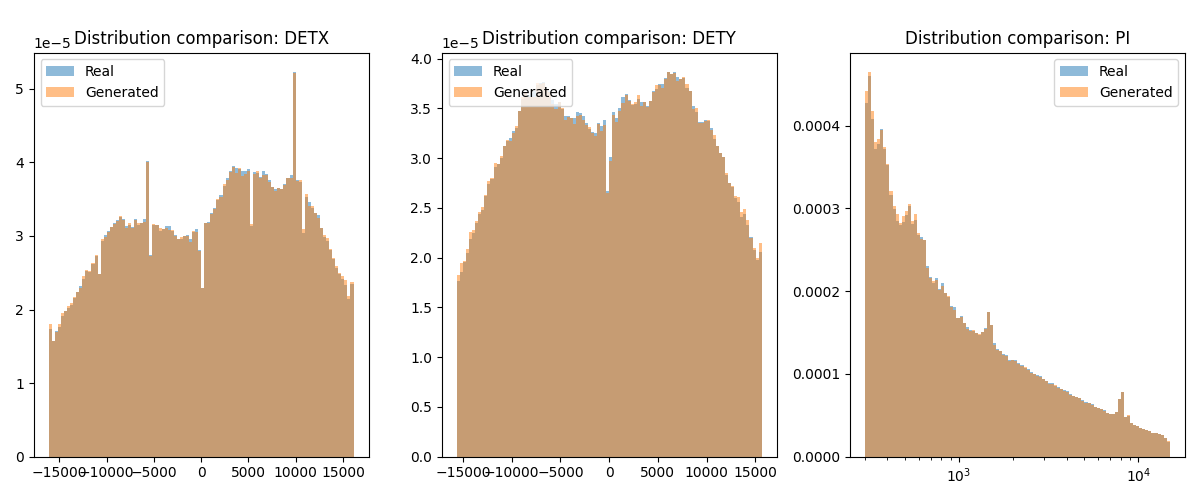 Overview. This collection contains synthetic solar-flare events generated with the ESPAI Variational Autoencoder (VAE) GenAI model, designed to emulate EPIC-pn camera observations. Each event is provided as a .parquet file containing the Pulse Invariant (PI) and the detector coordinates (DETX, DETY); Each event is provided as a parquet file containing three features: PI, DETX and DETY; releases will ship with transparent generation settings.